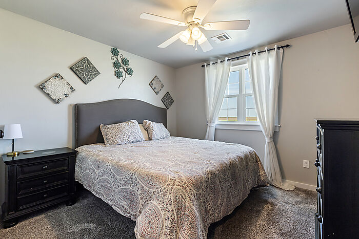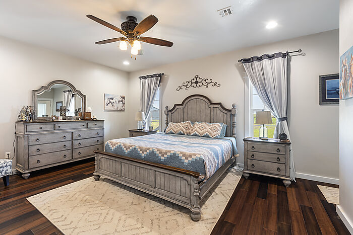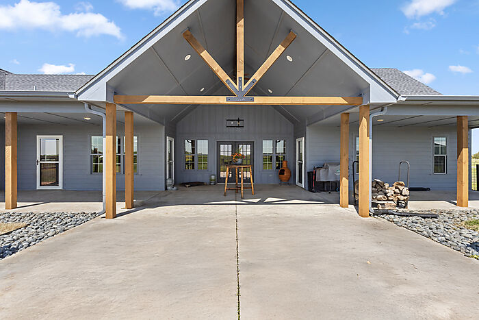 Stunning modern farmhouse on 14.87 acres in the highly desirable Chisholm School District with no HOA. Built in 2017, this 3,012 sq ft home offers 3 bedrooms, plus 2 bonus rooms, 3.5 bathrooms, and an upstairs movie theater room. The main-level primary suite features a spacious walk-in closet, walk-in shower, soaking tub, dual vanities, and private toilet room. The open-concept living, dining, and kitchen areas feature a wood-burning fireplace and walk-out access to a covered back patio with ceiling fan, lighting, TV mount, and fenced backyard overlooking the horse pasture.
