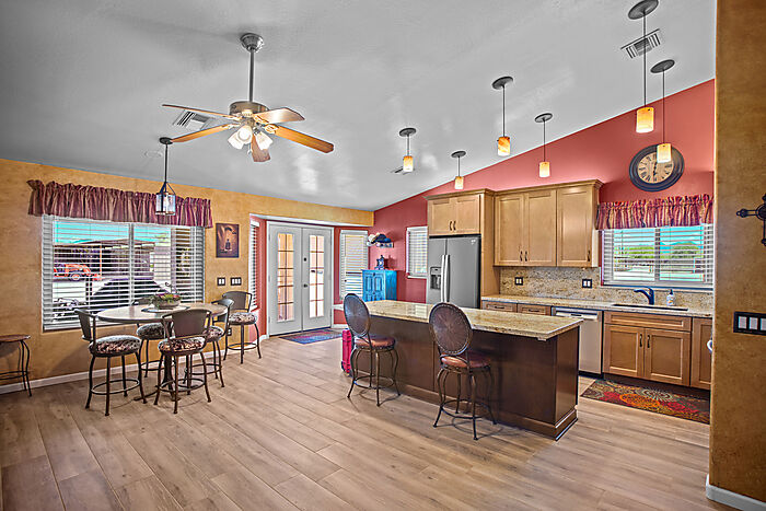 Welcome to your equestrian paradise in the Desert Hills area of Phoenix, Arizona! This beautiful, newly renovated 3-bed, 2-bath home with a 3-car garage sits on 3.6 fully fenced acres, offering privacy and direct access to state land on two sides. Home has been thoughtfully updated over the past two years, featuring a brand-new kitchen, both bathrooms remodeled, and new flooring throughout. The property is a dream for horse lovers, boasting a 255' x 120' arena, 120' x 55' turnout, and two mare motels with a combined 23 stalls. Additional features include an 80' x 25' RV cover, a detached 2-car garage, and ''Club House'' complete with its own half bath and laundry. With easy access and beautiful views this unique horse property combines modern living with true Western charm.