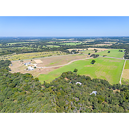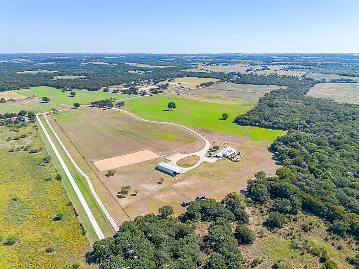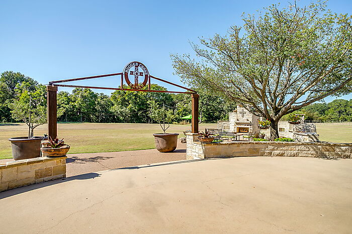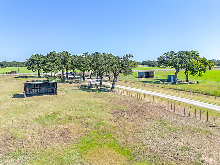 The estate begins with a captivating arrival experience. A gated entrance opens to a picturesque tree-lined drive stretching a quarter mile, weaving between two lush Coastal Bermuda hay pastures totaling more than 40 acres. Whether you envision baling your own hay crop, running cattle, or creating state-of-the-art equine facilities, this property provides the perfect canvas to paint your Texas dream ranch.