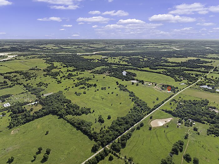 Rare opportunity to own 360± acres of highly productive, turnkey ranch land with multiple homes, just 40 minutes from Oklahoma City and 2.5 hours to DFW. This exceptional property offers the perfect blend of income, recreation, and lifestyle—ideal for cattle, horses, farming, hunting, or private retreat. Excellent productive pastures, fertile loamy soils, and an abundance of water, all contributing to consistent yields and long-term sustainability. Treated and fertilized in 2025, the land currently sustains 60 cow/calf pairs, 15–20 horses, and hay production, with potential to expand. Forage is plentiful, and the opportunity for additional hay production is abundant. Pastures are cross-fenced for rotational grazing, while wooded creek bottoms provide outstanding wildlife habitat or could be cleared for more grazing. Trophy whitetail, wild turkey, stocked ponds, and mature pecan trees add to the ranch’s appeal. Improvements include a 150' x 300’ pipe roping arena, outdoor arena, multiple pipe corrals with shelters, three barns, working pens, and pipe/wire fencing. Multiple water sources—wells and rural water—ensure reliability for livestock and homes. Residential amenities are equally impressive. A new 1,600 sq ft main home showcases vaulted ceilings, open living spaces, wood flooring, stainless appliances, a main-level master suite, two upstairs guest bedrooms, and an attached 1,600 sq ft shop with overhead door, water, and electricity. The second home, updated and well-kept, offers 1,152 sq ft with 3 bedrooms, 1.5 bath, barn, and in-ground cellar. A third home (1,357 sq ft, 3 bed/1.5 bath, circa 1920) provides excellent potential for staff or rental income with some TLC. Together, the main and second homes provide 2,752 sq ft MOL of finished living space, not including shop or barns. With blacktop frontage, multiple homes, productive pastures, and subdivision options (MLS #1185102 and #1190654) this ranch checks every box. Wildlife pics included!