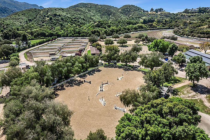 Experience 1812 W Potrero Road, operating as Shelburne Farms, an iconic & income producing Equestrian Facility in the heart of Hidden Valley. This rare offering sits minutes from Lake Sherwood and Sherwood Country Club, with easy access to the shopping, dining, and services of Westlake Village and a short scenic drive to the beaches of Malibu. The property is designed for serious training and smooth daily operations, blending large scale infrastructure with the timeless beauty of rolling hills and an open sky. The equestrian facilities include a main barn with 33 stalls, 5 of which are 12 x16, and 3 of those with in and out access. A secondary barn provides 23 stalls, the lower barn offers 8 stalls, and the hay barn includes 4 additional stalls for overflow, creating a total of 68 stalls. Training amenities feature 4 arenas including 2 large arenas, 1 smaller arena near the secondary barn, and 1 overflow arena near the residence. There are 22 turnouts in various sizes with some partial covering, 2 tracks and 1 Eurosizer. The main residence offers approximately 4,130 square feet with 4 bedrooms and 4.5 bathrooms, generous living and dining spaces, a pool and an easy indoor to outdoor flow that is ideal for relaxing after a ride or hosting friends. Two additional staff apartments are integrated within the barns. Set within one of Southern California's most storied Equestrian Enclaves, 1812 W Potrero Road delivers privacy, convenience, and a proven income stream in an exceptionally well equipped training environment. Hidden Valley feels a world apart, offering the rare union of country quiet and coastal convenience, with sweeping scenery, privacy, and generous open space. It is one of Southern California's most coveted settings for horse lovers and nature minded homeowners, where daily life can include morning rides and evenings spent entertaining under the stars. Here, the setting elevates both living and training, supporting a serious equestrian program while providing a warm and welcoming home base. This is a property that rewards both performance and peace. Listed by: Jenna Kaye - #09132772 - Rodeo Realty & Jaime Krupnick - #02139605 - Engel & Volkers |