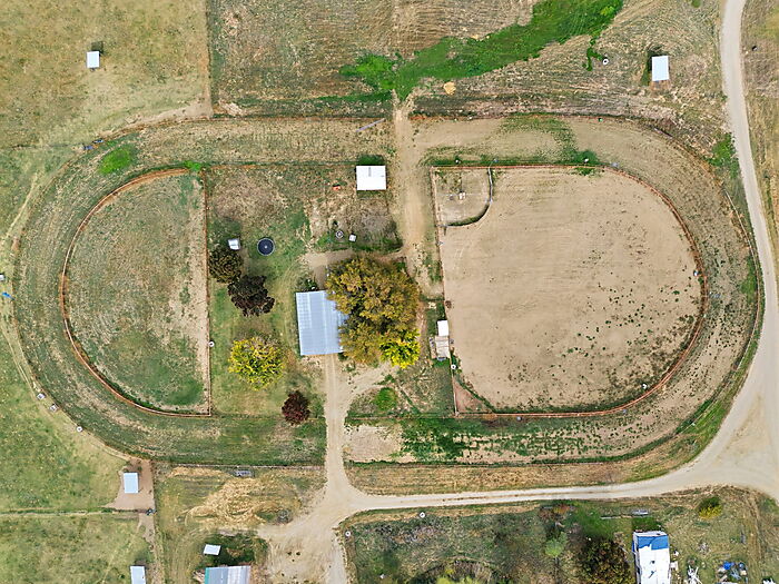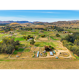 Property B features a 700-foot training track and two arenas (200x200' and 120x200'), each with a decomposed granite base and excellent footing. The facility includes solar arena lighting, a hot walker, and a 4-stall barn with a recently renovated office. The barn is equipped with a kitchen area, sink, hot water heater, and bathroom, providing both functionality and comfort.