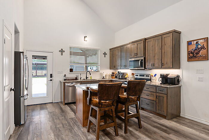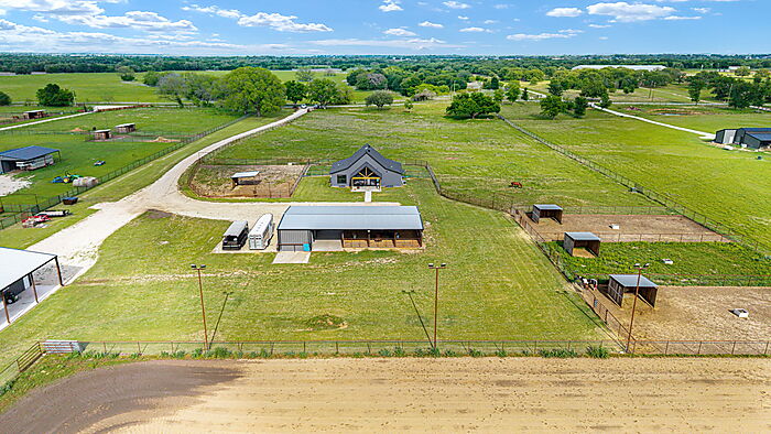 You will not find a better setup than this CHARMING HORSE PROPERTY in Lipan! This exceptional property offers so much and has lots of recent upgrades. This 10 acre property boasts a beautiful modern home thats 1707 square feet, lots of open space with a vaulted great room open to the kitchen. Three bedrooms, two baths, the primary bedroom and bath are exceptional and has a large walk in closet. Home was built in 2022. Entire property is fenced and cross fenced. Pipe fencing with no climb wire. There are four large traps with loafing sheds, all have automatic waterers. Two large pastures with shade and automatic waterers. Barn, 20x60, has three large stalls, could be converted to six stalls, water lines in place, tack room has saddle and bridle mounts, large feed room, and a concrete wash area. 125x250 lighted arena with an air operated priefert roping chute. New lines recently ran to the newly built 30x50 insulated shop. Shop has two large roll up doors, fully wired, inclosed separate storage area that could be converted into a in-law suite. Has overhead storage as well. Water purification system recently added, reverse osmosis system to sink and refrigerator. New entry gates. Every part this property has been meticulously maintained and thoughtfully designed. Finally, when you have guests, they can plug into two 50-amp RV plugs or one 30-amp RV plug. Move in, start roping!