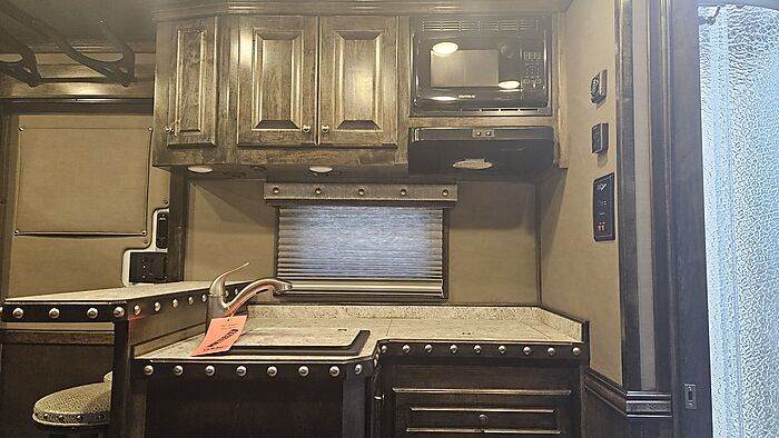 Brand new 2025 Bloomer 4 Horse LQ PC Load with Outlaw Conversion, two spread 10k lb axles with 19.5in alcoa wheels, 8ft wide 7'6 tall, drop doors on head and tail with shocks on feed doors, integrated hay pod, single a/c, gas generator, escape door, full rear tack with shelves, medicine cabinet and 110plug! Mangers, stud wall, keyless entry, 6ft slide out, sleeper sofa, 60gal freshwater tank behind sofa, huge kitchen area with raise bar and barstools, pass thru door in bathroom, dual front hydraulic jacks, electric over hydraulic brakes.
