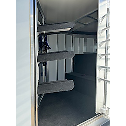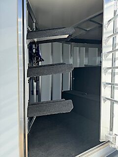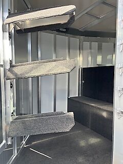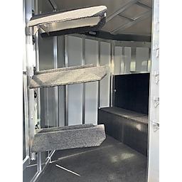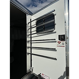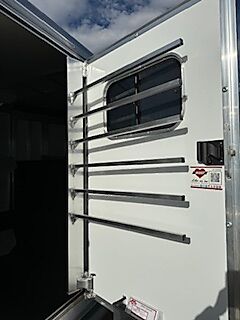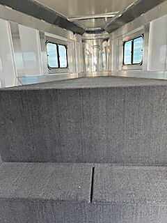 19" long x 6'8" wide, 7'1" Tall, Heavy Duty Kickwall Matts, Rubber FLoormats, Padded Dividers, Insulated Roof, Roof Vetns, Full Rear Load Gate, Escape Door, LED load lights, Drop-Down Windows on Head Side with Face Guards, Slated Side on Hip with Customized Plexi Glass (shaded), 4' carpeted Tack/Dressing room, 3 Tier Swivel Saddle Rack, 6 Tier Swivel Blanket Bar, Bridle Hooks, 5-16" aluminum wheels, 2-6000 lb axels.