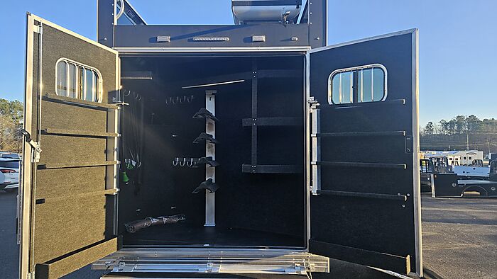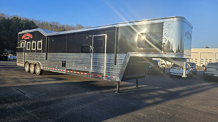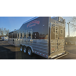 Brand new 2025 Bloomer 4 Horse LQ with Outlaw Conversion, PC load, Full rear tack with outlet plug, Enclosed front end, Black with all Red Logos, Drop doors on head and tail with shocks on feed doors, mangers, integrated hay pod, Onan gas generator, 3 8500lb axles with 19.5 Alcoa wheels, 2 a/c units, 17'10 sw, stud divider, escape door, Sleeper Sofa, extra 60 gallon fresh water tank behind the sofa, Corner Booth, central vac system, Pantry with double rods and shelves, hinged tv door with storage, additional generator switch in bedroom, huge closet in bathroom, shower has corner bench seat, Call Andrew at 205-915-9858 or David at 205-559-3031 ๏ธ๏ธ๐ฅ๏ธ๐ฅ๏ธ๐ฅ๏ธ๐ฅ๏ธ๐ฅ๏ธ๐ฅ๏ธ๐ฅ๏ธ๐ฅ๏ธ๐ฅ๏ธ๐ฅ๏ธ๐ฅ๏ธ๐ฅ๏ธ๐ฅ๏ธ๐ฅ