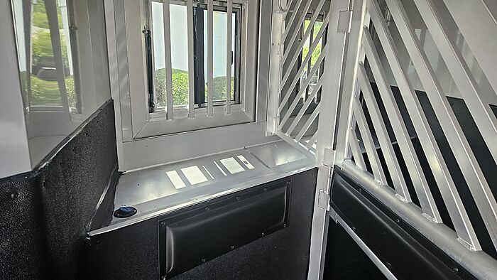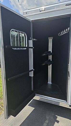 2 Horse slant load, with mangers, drop doors on head and tail, small dressing room up front, 16in Alcoa wheels