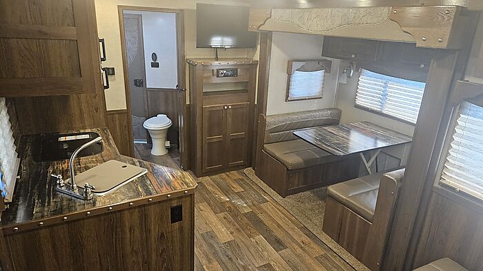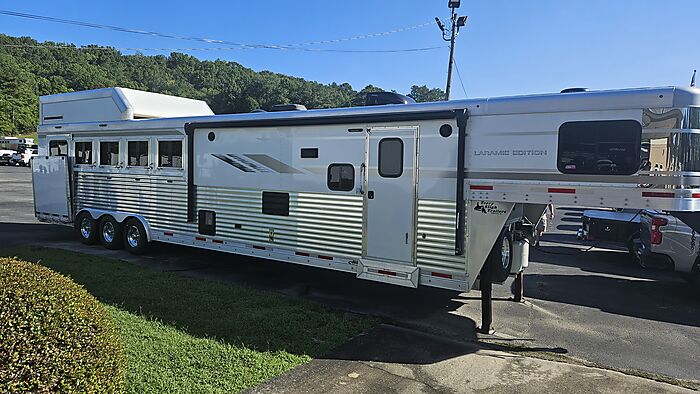 Like New 2020 SMC Laramie Edition 5 horse LQ, PC load w full rear tack, drop doors on head and tail, Werm Flooring, 14ft sw with 7ft slide out, 16in aluminium wheels, Electric brakes, pass thru door, escape door, stud wall, integrated hay pod, onan generator with only 23hrs, couch on drop wall, dinette in slide