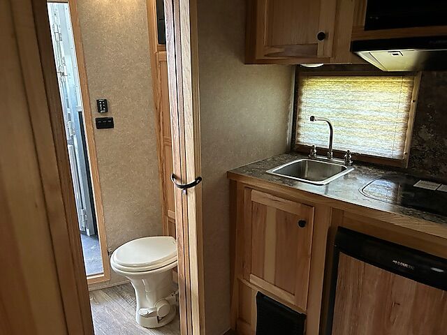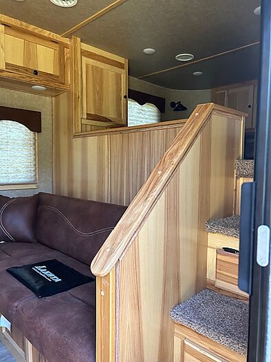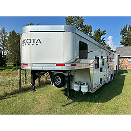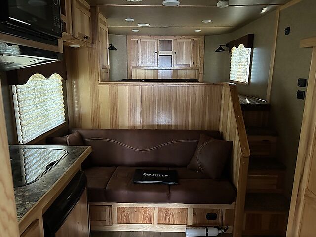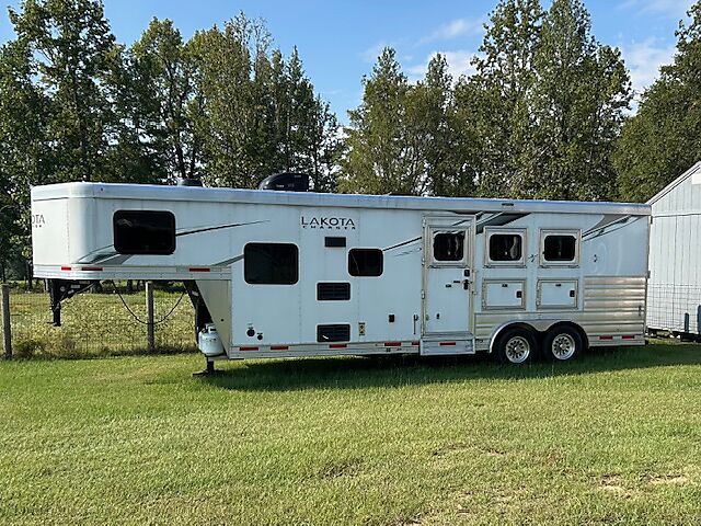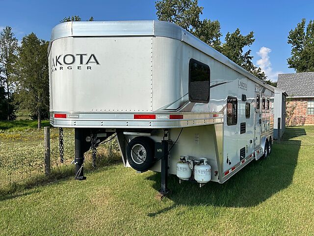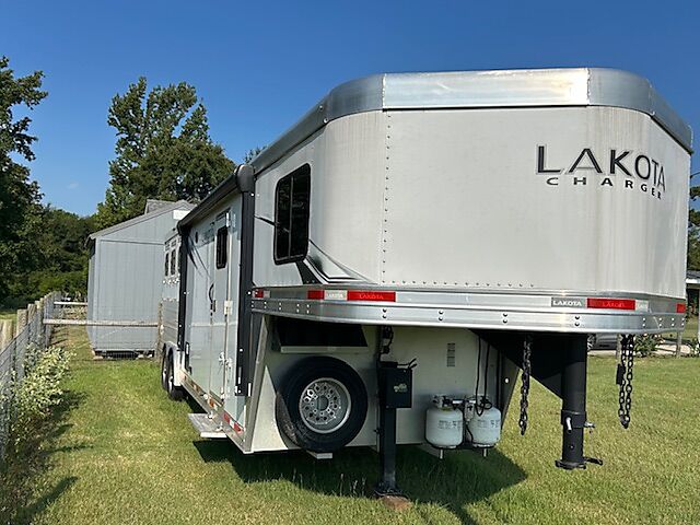 2023 Lakota Charger - ( LIKE NEW ) - Living Quarters - 3 Horse - 8' Wide / 7'6" Tall - Fold Down Sofa / Sleeper on Riser - Closets - Drop Down Windows Both Sides - Mangers - Electric Awning - 50/50 Rear Door w/Tack - Upgrade Mattress - Many Other Options!