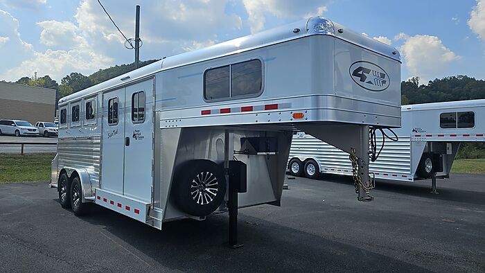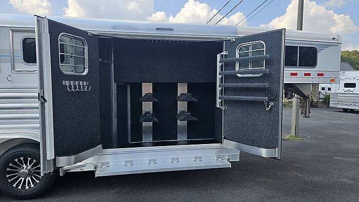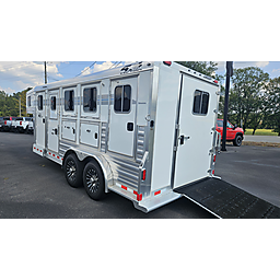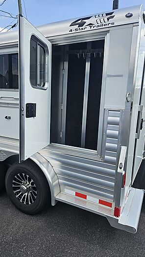 Like new 2026 4 Star 3 horse trainer trailer, Werm flooring, drop doors on head and tail, stud wall, mangers, escape door, broom closet, Super tack double door side tack with shocks on doors, rear ramp, hydraulic jack.