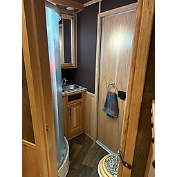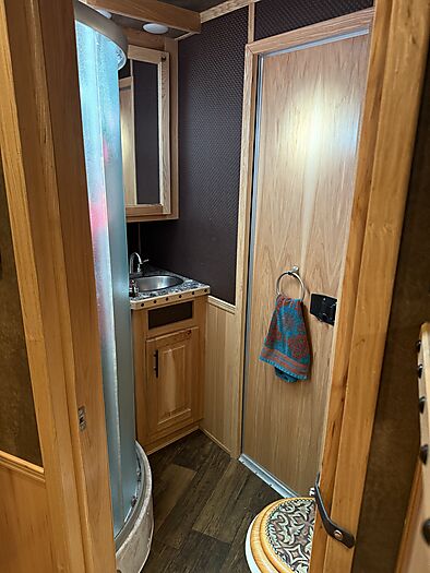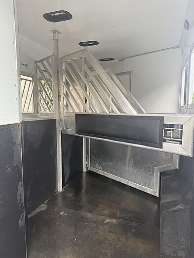 - 3 Horse slant load - roomy stalls, large drop down windows and mangers. Escape door as well as a pass through door into the living quarters. Rear load with ramp. 8k torsion axels.