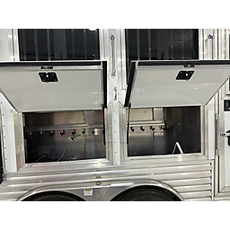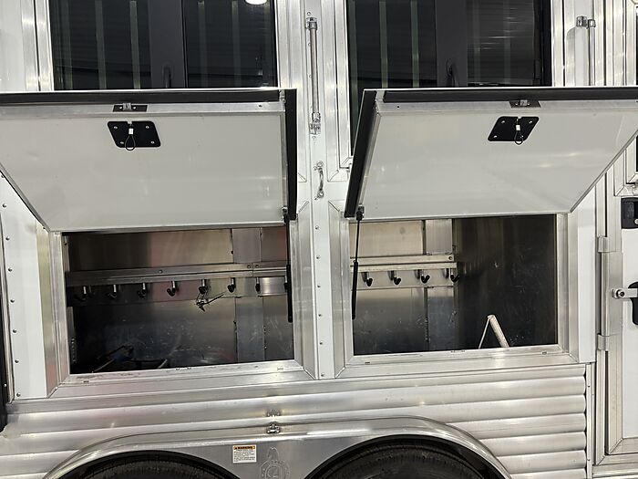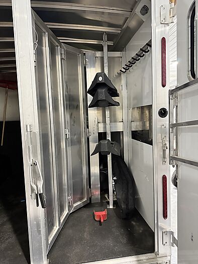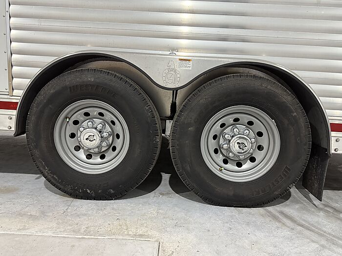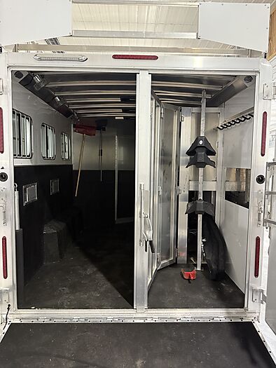 Beautiful, well maintained trailer. Only used 4 times. Aluminum Side paneling. Roof storage area. Rear Ramp with Swing Doors.