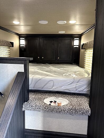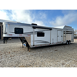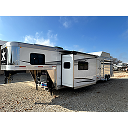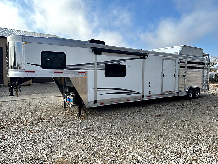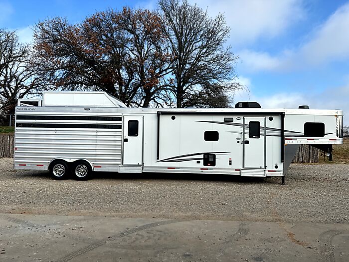 2026 Merhow Lonestar - Model 8012-A RK-S, 14' stock with a 12.5' shortwall and midtack = 34' Floor length x 8' Wide x 7'6" Tall, 7,000 # rubber torsion axles, electric brakes, ST215/75R17.5 - 16 ply Cooper tires, Spare tire, Dual leg hydraulic jack, Aluminum battery box, Dual propane bottles, Stainlees steel nose, Prewired for generator, Haypod with platform and pullout ladder, 14' stock back, 50/50 doors, Rubber mats, Plexiglass with track, Floating roller cut gate, Escape door with flip down step, Walk thru to midtack, 7.5' shortwall on midtack, 48" Ramp on street side, 3 Saddle racks, Bridle hooks, Brush tray, Curb side door with flip down step, Walk thru door to the LQ, 12.5' shortwall in the LQ with electric slide, Jack knife couch, Fireplace, TV, Stereo, Dual kitchen sink, Convection microwave, Refrigerator, Porcelin toilet, 32" shower, Dual rod clothes closet, Queen mattress in nose, Loads of cabinets for storage, 10 gal water heater, 200 watt solar panel.