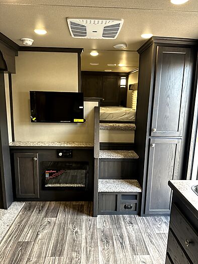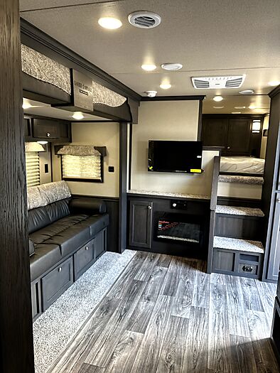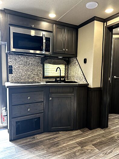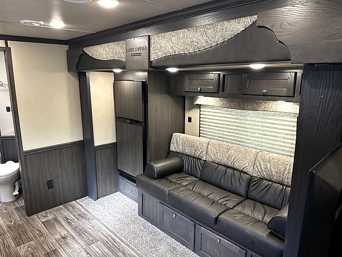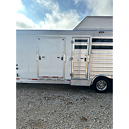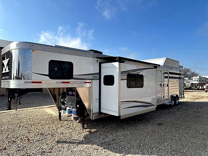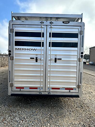 2026 Merhow Lonestar - Model 8012-A RK-S, 14' stock with a 12.5' shortwall and midtack = 34' Floor length x 8' Wide x 7'6" Tall, 7,000 # rubber torsion axles, electric brakes, ST215/75R17.5 - 16 ply Cooper tires, Spare tire, Dual leg hydraulic jack, Aluminum battery box, Dual propane bottles, Stainlees steel nose, Prewired for generator, Haypod with platform and pullout ladder, 14' stock back, 50/50 doors, Rubber mats, Plexiglass with track, Floating roller cut gate, Escape door with flip down step, Walk thru to midtack, 7.5' shortwall on midtack, 48" Ramp on street side, 3 Saddle racks, Bridle hooks, Brush tray, Curb side door with flip down step, Walk thru door to the LQ, 12.5' shortwall in the LQ with electric slide, Jack knife couch, Fireplace, TV, Stereo, Dual kitchen sink, Convection microwave, Refrigerator, Porcelin toilet, 32" shower, Dual rod clothes closet, Queen mattress in nose, Loads of cabinets for storage, 10 gal water heater, 200 watt solar panel.