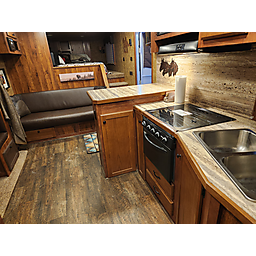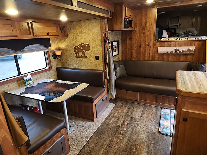 Dinette in slide, couch on riser wall