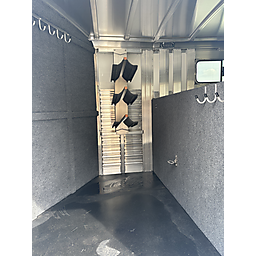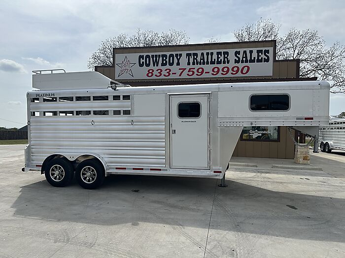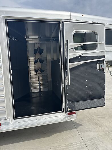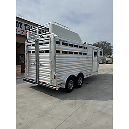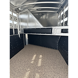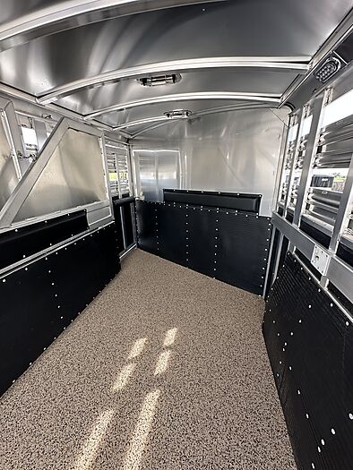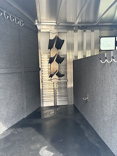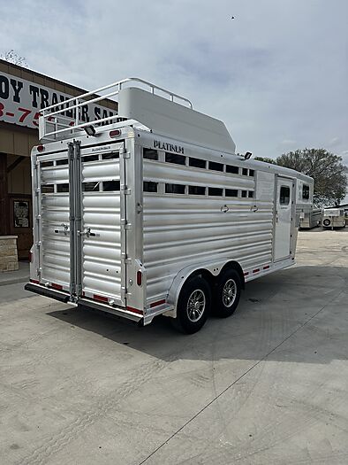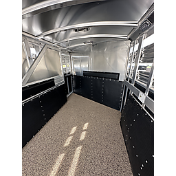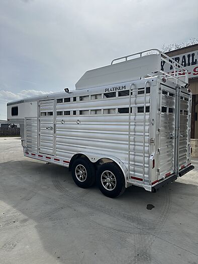 2026 Platinum 3 Horse Stock combo = 17' Long x 7'6" Wide x 7' Tall, 5200# Rubber torsion axles, Electric brakes, 16" tires, Aluminum mod wheels, Spare tire, Single aluminum battery box, 6' Hayrack with ladder, 50/50 Rear gates, EquiFlex poured floor, Plexiglass track, 3 Two-way roof vents, Escape door, Padded dividers, Removable baby panel on first divider, Folding break divider on second, 48" Glued mats on walls, 36" short wall on tack room, 36" dressing room door, 3 Wide based saddle racks, 3 Swing out blanket bars, 15 Bridle hooks, Brush tray on door, Carpet on bulk-head and gooseneck walls, 3 High intensity LED load loights, 4 LED dome lights.