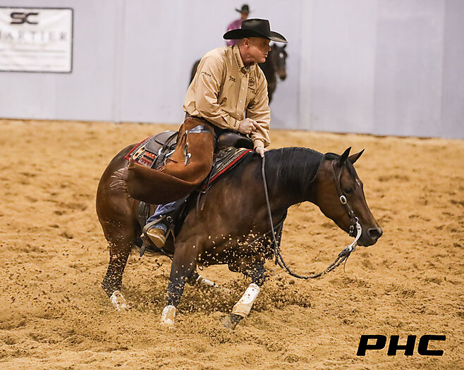 - 2017 NCHA Futurity Open Semi Finalist riding Smokin Some Lena