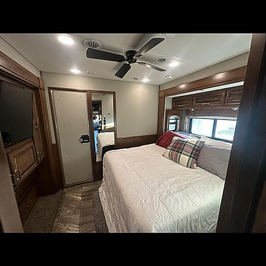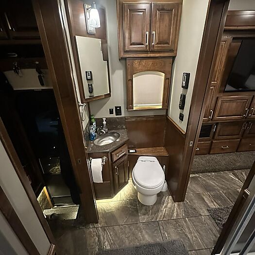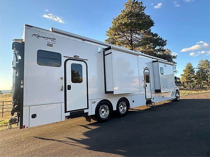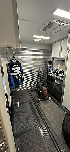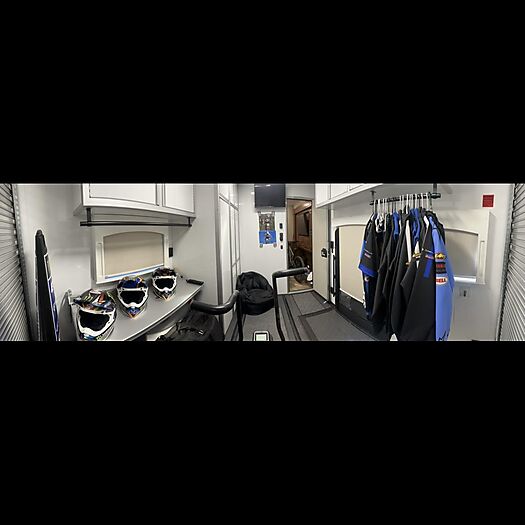 Supercross & Motocross Champion Eli Tomac has decided to sell his personal coach that is on tour throughout the race season. This is a 2020 custom build by Renegade that Eli went on to win his first 450 Monster Energy Supercross Championship with, and so many memories and great success since then. This is his home away from home when he is at the races, so comfort was very important to him with this build. Which is why it is loaded with extra's, such as a full winter package which allows you to use this coach all year long without having to winterize. Both sewage tanks are also heated to avoid freezing. Located in a custom garage cabinet is a soft water system that is plumbed to the built in electric pressure washer which allows you to wash the coach with a spot free finish without having to dry the coach by hand. You can also turn the soft water valve off and just use regular water if you are not washing the coach.