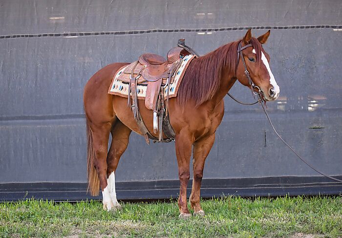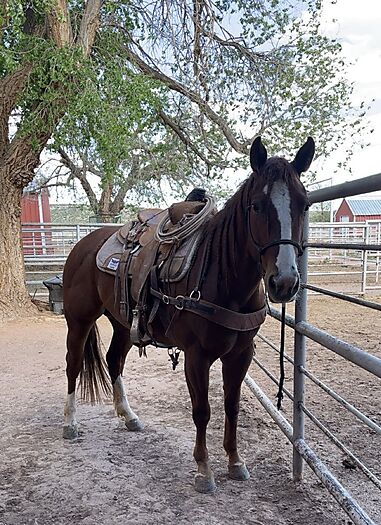 She has been used outside on the ranch, hauled to ropings, and hauled to horse shows. She has a good mind, handles new experiences like a pro and takes to training well.