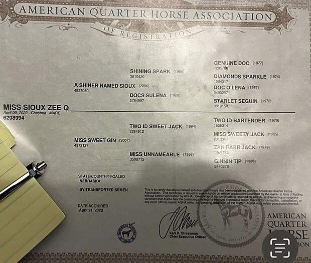 She is a strong filly who could also go in the direction of the rope horse futurities. She has been roped off of and tracks a cow well. Her huge stop and powerful hind end makes her stylish on both ends.