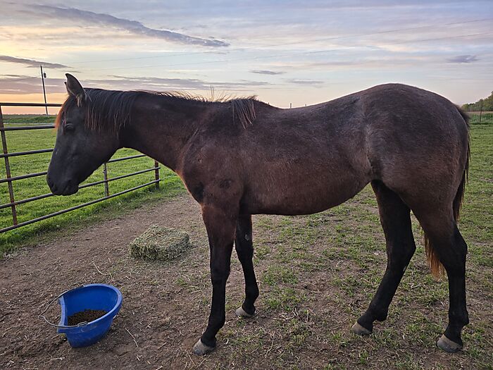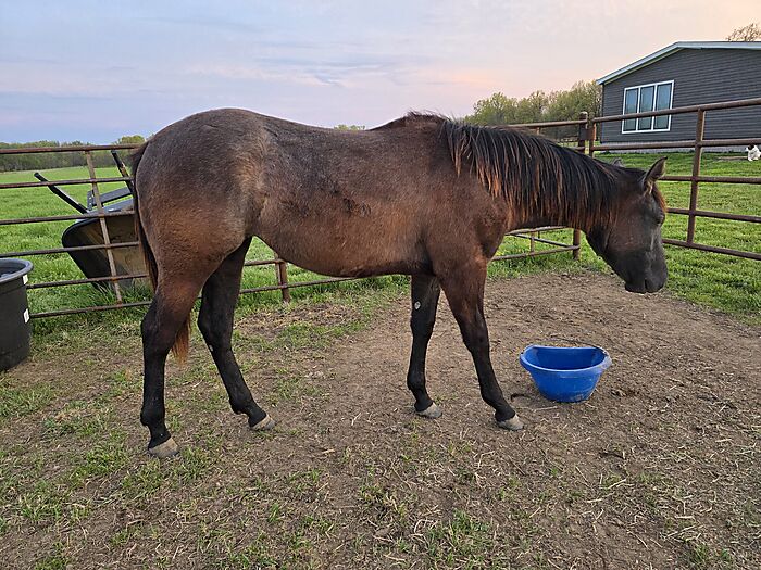 Halter broke, stands tied, and hauls in the trailer