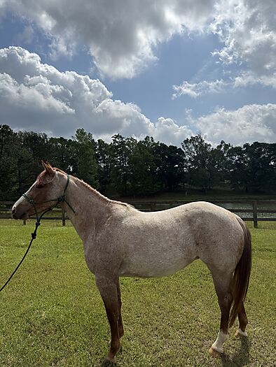 Really nice 3 yr old mare on track for small futurities or big futurity. Very easy to get along with on a daily basis and extremely laid back. Stops good and is very smart on a cow. Call or text 251-504-0690 for more details and videos