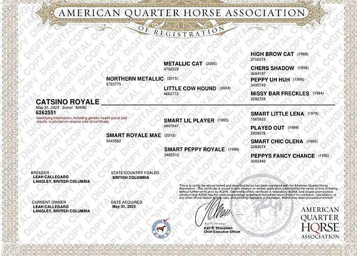 Incentives: NCHA Breeder's Invitational, NCHA Super Stakes, The Royal Crown Roping Futurity, NRCHA Stallion Incentive