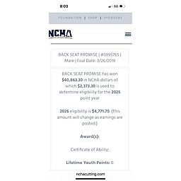 UPDATE!! Roxy was just a 3 time finalist at the Cascades Futurity & Aged Event and Champion of the 5/6 Amateur!! Roxy is suitable for non-pro or amateur riders. She was shown at the PCCHA Derby in Vegas where she was the 5/6 Amateur aggregate leader with a 438 and the 5/6 Intermediate Amateur go round leader with a 221. She was Champion of the 5/6 Amateur marking a 223.5 and Co-Champion of the 5/6 Intermediate Amateur marking a 220.5.
