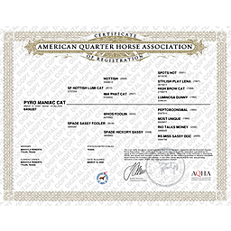 By SF Hottish Lumi Cat (LTE $123,437) who stands at the 6666 Ranch. Lumi Cat finished 3rd at the 2018 NCHA Futurity. Has sired multiple money earners including an NRCHA Snaffle Bit Futurity Non Pro finalist.