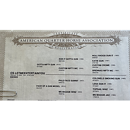 Sired by Gotta Nifty Gun ($98k LTE) and out of a good producing daughter of Pale Face Dunnit. Double Registered AQHA and APHA. Eligible for NRHA, NARS, NRBC incentives.
