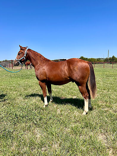 This yearling stud was bred to cut. His sire, Royal Fletch, was a NCHA Futurity Champion and a current million dollar sire. Royal Fletch is the earner of $235,852: NCHA Open Futurity Champion; finalist in the NCHA Open Derby, Abilene Spectacular Open Derby, Brazos Bash Open Derby; and 3rd in the Polo Ranch 4-year-old open. His dam is out of Mo Flo (1999 Mare) who has a total of $130,784 in NCHA Life Time Earnings. Her total progeny earnings are $341,234 and her top money earner, Playin Motown, has an LTE of $111,899. His dam's sire is Mr Playinstylish, a more than proven reined cow horse, with a total LTE of over $140,000; NRCHA World Champion and AQHA World Champion. This yearling stallion is a cutting or reined cow horse prospect you don't want to miss out on!