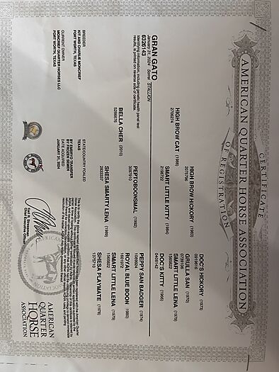This colt is a full brother in blood to METALLIC CAT! He is a half-brother to PLAYIN WITH CHER ($70,026: APHA World Champion Senior Open Working Cow Horse, NSHA RCH Futurity 2-Rein Open Champion, 4th NRCHA Celebration of Champions Int. Open Derby). Dam BELLA CHER, is a half-sister to PANTERA CAT ($87,623: NCHA Super Stakes Non-Pro Classic Co-Reserve Champion), CHER THE SUGAR ($43,191: 6th NCHA Limited Open Futurity, semi-finalist NCHA Open Futurity) and to the dams of NITREYIOUS ($445,845: NCHA Non-Pro Futurity and Open Finals Reserve Champion), CANTEBURYS CHERREY ($329,580: Riata Buckle #12 Heeling Champion, 2024 PRCA/NFR Team Roping Qualifier winning/placing in multiple rounds and 5th in the average), METALLIC CAT ($637,711: NCHA Open Futurity Champion and #1 All-Time NCHA and NRCHA Leading Sire). Granddam is SHESA SMARTY LENA ($224,005: 6th NCHA Open Futurity). He is certainly a fantastic cutting or reined cow horse prospect that you don't want to miss out on!
