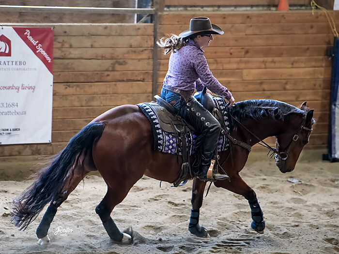 Gerry has done it all — shown in NRCHA cowhorse events across BC and Alberta, camped overnight, swims in lakes, moved cattle, roped the dummy, and just had fun. He’s even gone English and pulls it off with style, though he definitely prefers western lifestyle.
