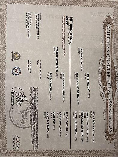 Out of Bet Hesa Cat (LTE: $272,151) and whose dam is a half-sister to 10 money-earners, including SMART AVENGER ($62,233: 4th Memphis Cutting Open Classic, semi-finalist NCHA Open Futurity), STYLISH ROSE ANNA ($30,406: Utah CHA Open Classic & Big Sky Cutting ProAm Classic Reserve Champion), DUALING FLETCH ($25,766: Idaho RCHA Open Derby Co-Reserve Champion, top 10 NRCHA Open Stallion Stakes), and to the dam of MAMAS LOVE DULCES ($58,200: top 10 Abilene Spectacular Cutting Open Derby; dam of ONE ROYAL LOVE $85,353 & AUSPICIOUS LOVE $50,055). Granddam is ROSEANNA DUAL ($155,825: split 11th NCHA Open Futurity, NCHA Open Derby Reserve Champion). This yearling colt is a sure enough cutting or cow horse prospect!