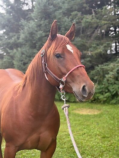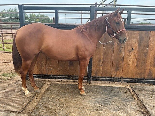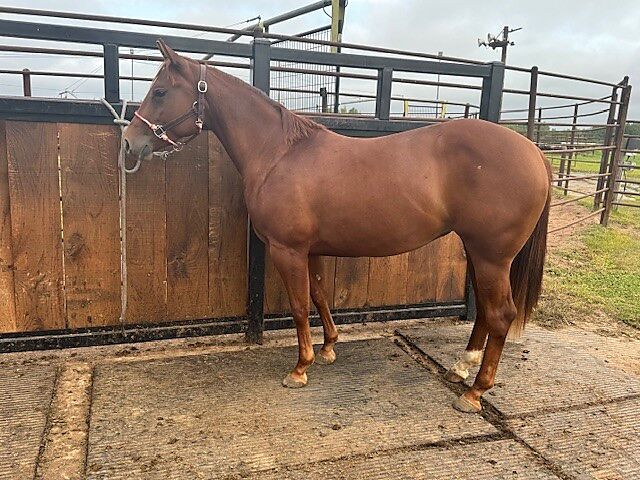2yo filly by PG Heavily Armed, started (she’s been with a trainer for 5 months) and ready to go any direction. Well built, nice mover, sound and sane. 6 panel Negative. Will remain with trainer until sold.