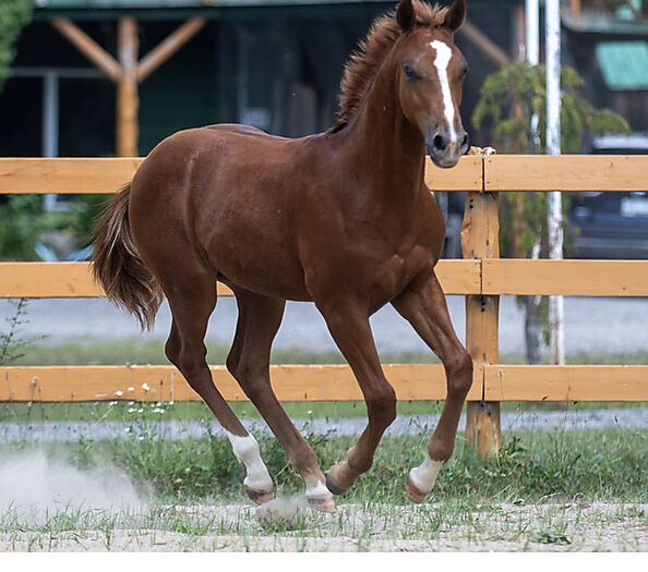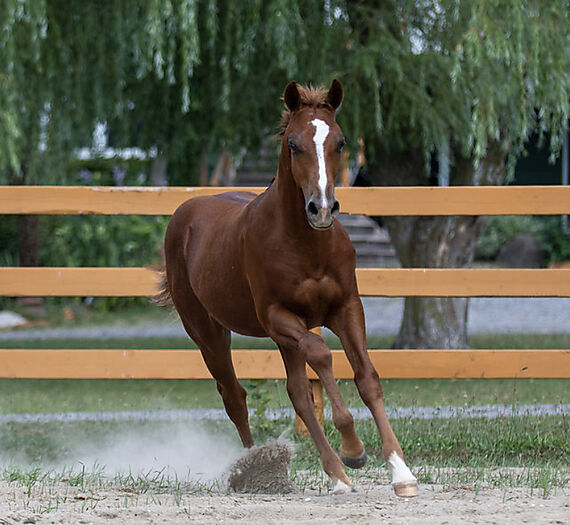 He has been handled daily since birth and his recipient mare allowed him independence with no smothering.