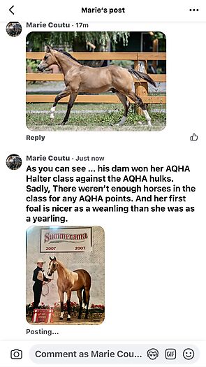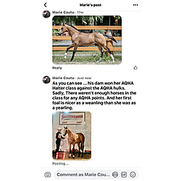 She won her AQHA halter classes - sadly there weren’t enough horses in the class to get any points) I breed for conformationally correct Cutters and Reiners.