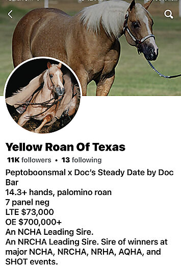 I’ve owned Streaker’s dam who is a daughter of The Yellow Roan of Texas x Peptoboonsmal $73,000 NCHA & produced almost $1 million)