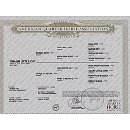 Her sire is Dualin Boon LTE$ 115k and offspring earning of over $ 1 million including the 2019 NCHA Open World Champion CR Gotcha Covered LTE $300K.