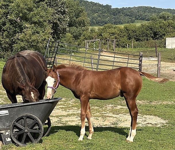 Pirate is a special colt. Well bred, correct and colorful. His dam is a big, pretty dark chestnut mare out of a daughter of Reminic. His sire , No Smoking Required has lifetime earnings over $500k. His oldest foals are 3 year olds this year.