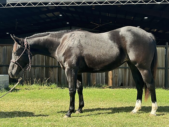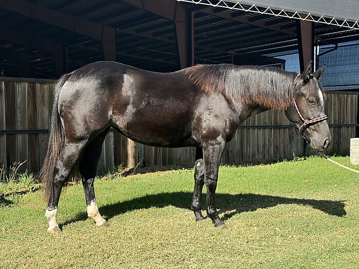 Take a look at this flashy black mare by NCHA Horse of the Year and NCHA Hall of Fame Stallion Third Edge! She is out of the money-earning daughter of High Brow Cat Greyce Kitty, whose one performance-age foal is already an earner of more than $17,000! With one that is put together like this and bred right, you won't want to miss out on her.