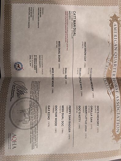 Cat Man Dual, Sired by $98 million Dollar sire HIGH BROW CAT, out of an own Daughter of Dual Pep. Grandam is no other than the great MISS ECHO WOOD. Extremely good minded and kind stallion, anyone would enjoy to call their own. Clean X-rays.