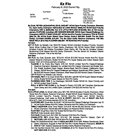 Valley Equine Super Stallion Incentive, Breeders Invitational, NCHA Super Stakes, PCCHA, NRCHA Cow Horse Incentive, Gold Buckle Futurities, Riata Buckle, Royal Crown Roping, NRBC, and Chrome Cash