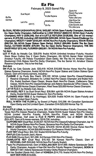 Sired by Dual Reyish (AQHA/APHA) the 2017 Open Futurity Champion and NCHA Hall of Fame horse with LTE of $453k