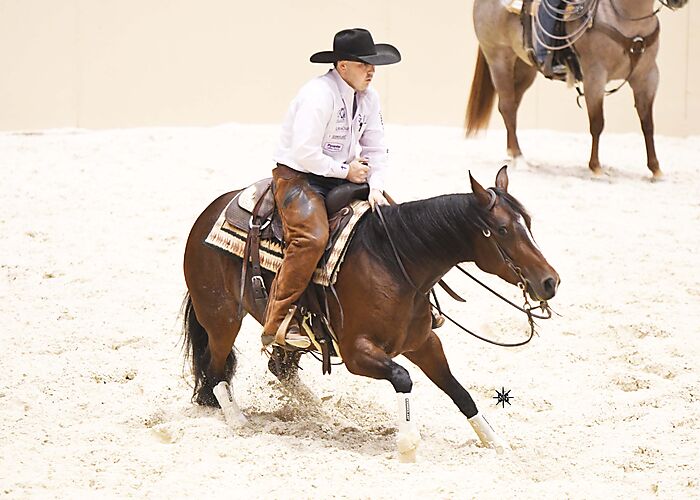This beautiful mare is fit and ready for her four year old derby debut. She has proven her worth in the open class but with her steady and reliable ways she would also suit a Non-pro or amateur rider. "Dewey" is an extremely sweet natured and friendly mare; she would also be an asset to any breeding program.