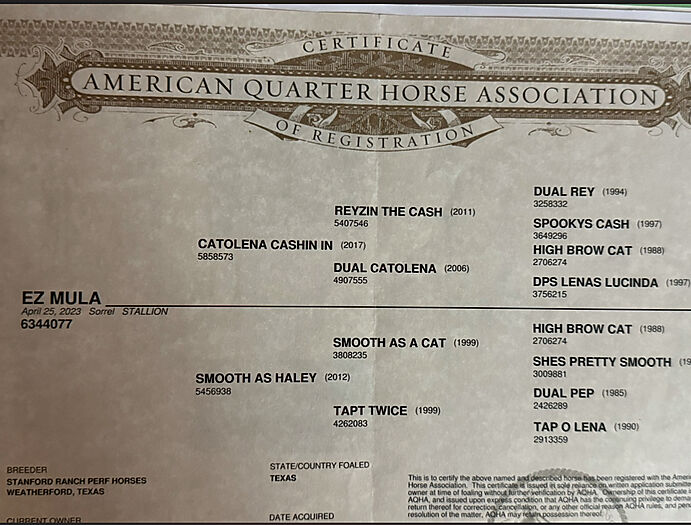 Sire: Catolena Cashin In (AQHA/APHA)