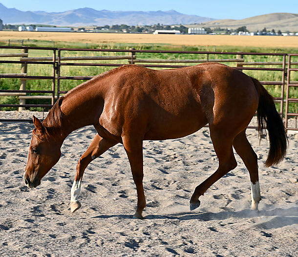 This Dual Reyish yearling filly has a beautiful head, neck, big soft eye, huge hip and rabicano!! Out of a WR This Cats Smart mare who won over $50,000.