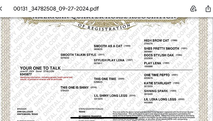 This colt is very light footed and already showing a ton of talent. Should make an open caliber prospect for either cutting or cowhorse!