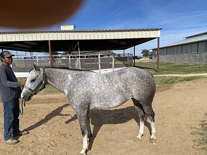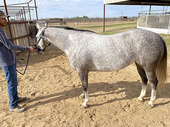 Double registered AQHA/APHA. Trained by Tom Merryman. Participated in the Open 2025 NCHA Metallic Cat World Championship Futurity with a respectable score in the first go. She is prepared for the next chapter of her career. 6 panel negative, sound, clean, up to date on vaccinations. This mare is beautiful, kind, trained and ready to continue showing in any class. She gives 100% every time. When her career is done, she will be a great broodmare. Her name says it all. Check out her video and see how "smooooth" she is.