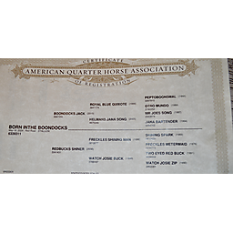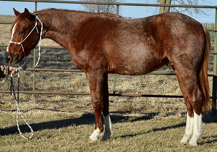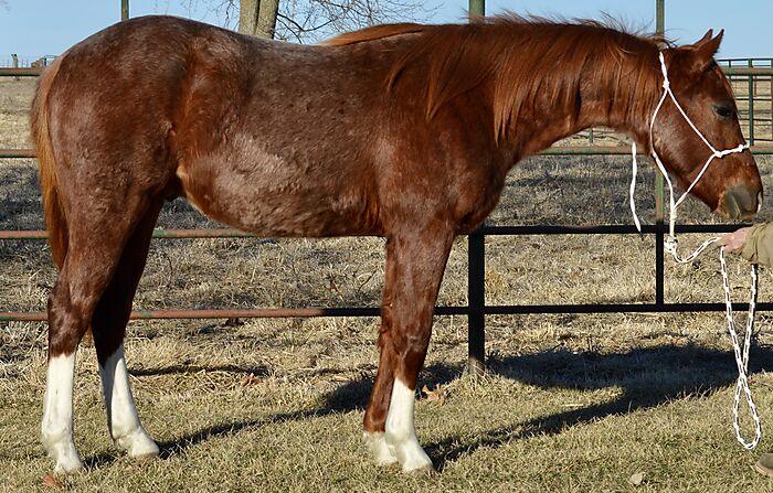 Boon is a gorgeous Red Roan, "own son" of the great "Boondocks Jack" - LTE:$5,120., 104 AQHA Performance points. Boons Dam is an "own daughter" of "Freckles Shining Man" - LTE:$10,766., 102 AQHA Performance points, and an own son of the legendary "Shining Spark"! Royal Blue Quixote, Peptoboonsmal, Mr Joes Song, Shining Spark and Two Eyed Red Buck are ALL on Boons face papers! Who's who of Performance horses! Boon is not gonna be a 16h Head horse. What he will be is a great Heel horse, Team Penner, Tie Down horse, Trail horse, Cutting, Youth horse or Cowhorse. Great project for an up and coming young horse trainer. He'll mature at 14 hands. He is very correct and has a lot of eye appeal! Personable disposition and wants to be your friend. He will shed his winter coat and be a gorgeous red roan color! Boon is a Rope horse just waiting his turn! Boon is eligible for the Howard Pitzer Invitational Futurities, Nebraska Ranch horse Futurities and the Gold Buckle Futurities. Opportunity knocking here at an affordable price! PorterQuarterHorses.com